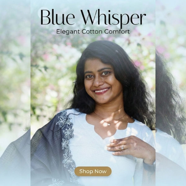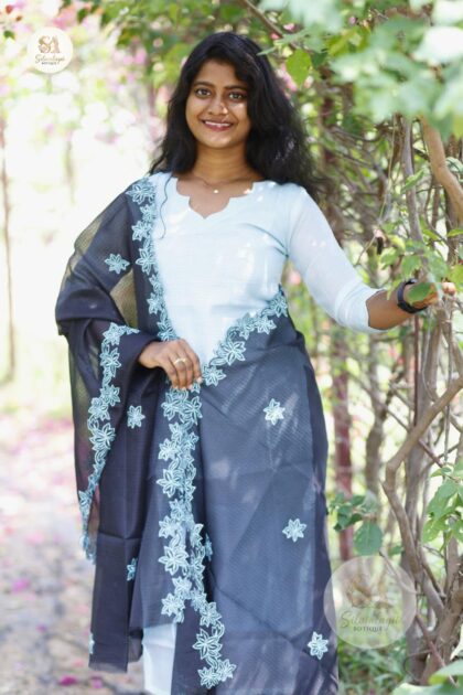 Blue Whisper Kota Silk Kurta Set with Embroidered Dupatta