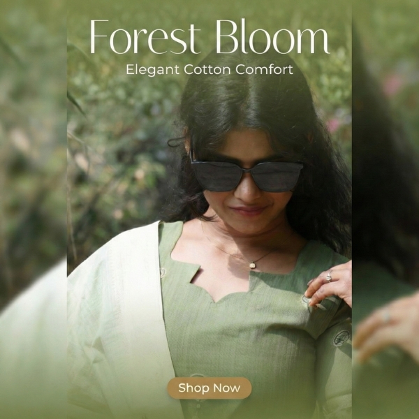 Forest Bloom Green Fancy Cotton Kurta with Dupatta