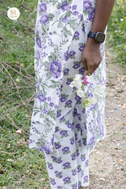 Floral Print Cotton Co-Ord Set – Dusty Blue