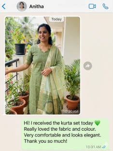 “Just received my order todayThe kurta material is very soft and breathable.Colour looks beautiful and exactly like the pictures.Totally worth the price!”
