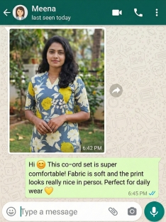 “HiThis co-ord set is super comfortable!Fabric is soft and the print looks really nice in person.Perfect for daily wear ”