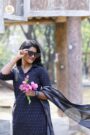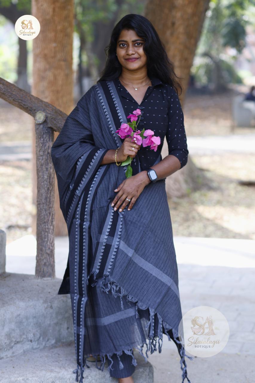• Product Name: Shadow Queen – Black Handloom Cotton Kurti Set with Dupatta
